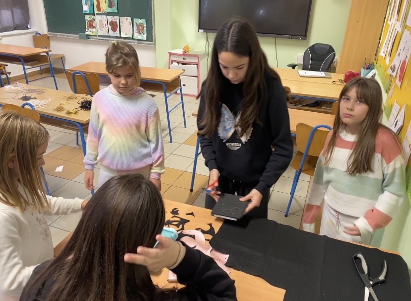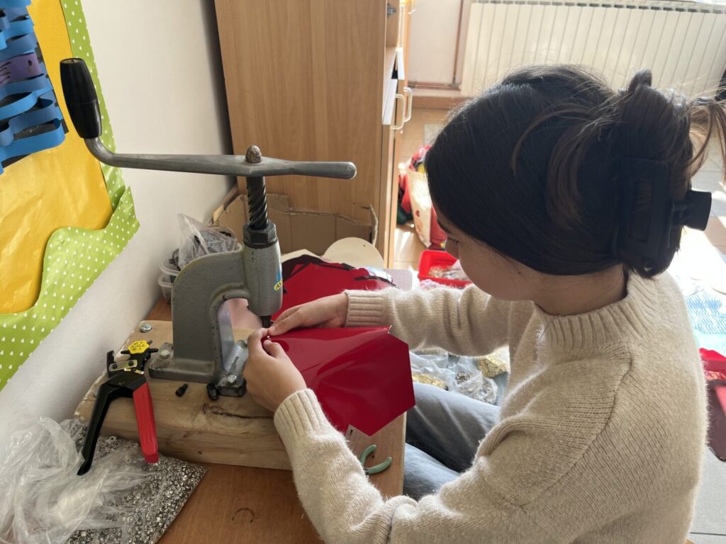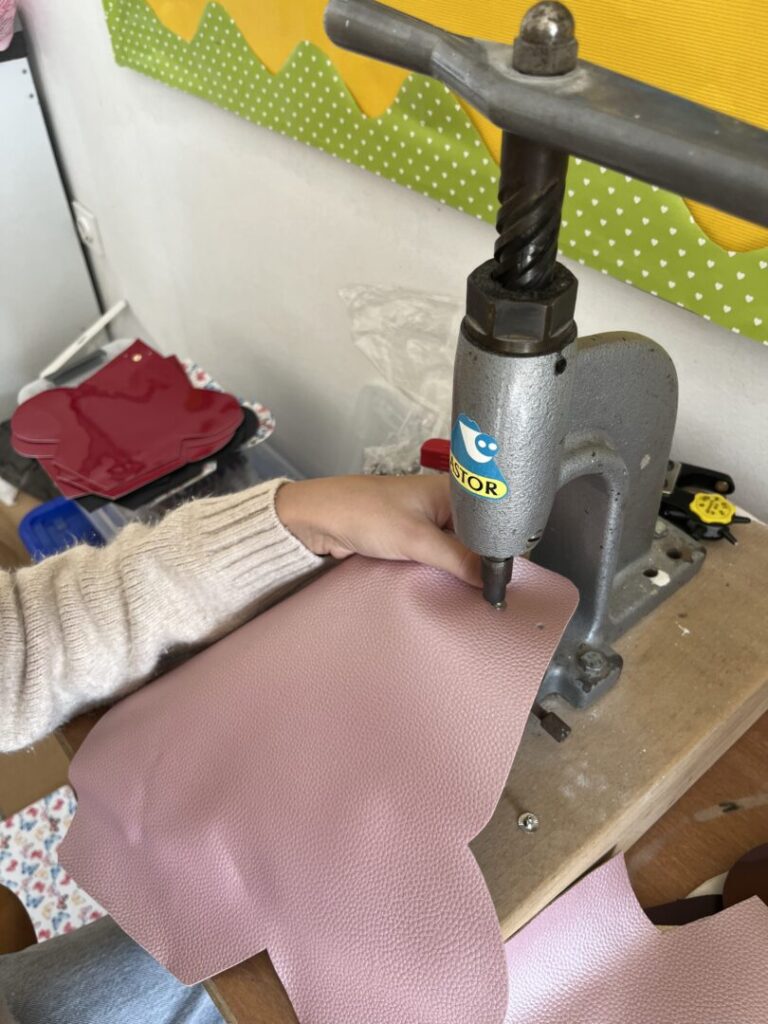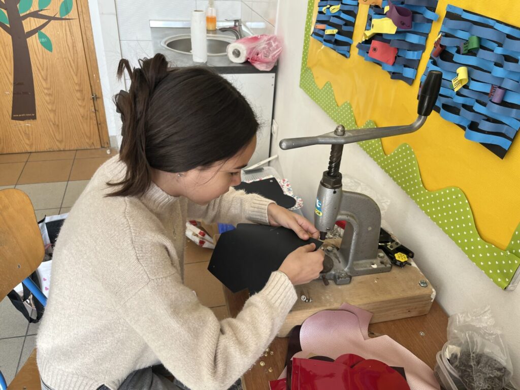 Izrađujemo pismo kožne torbice. Pripremamo se za prodaju na Državnoj smotri učeničkih zadruga u Poreču.