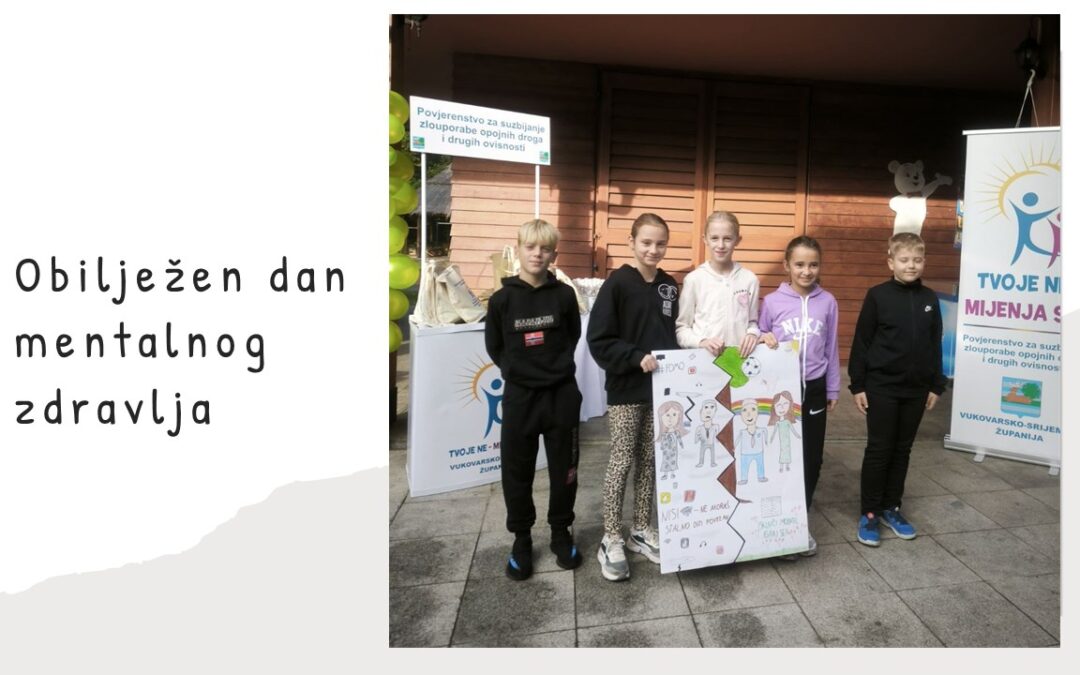 Nekolicina učenika četvrtih razreda sudjelovali su 10. listopada u obilježavanju Svjetskog dana mentalnog zdravlja s temom „Dan bez mobitela“. Učenici su pripremili plakat na tu temu te su ga predstavili, a uz to su dan proveli uživajući u aktivnostima na otvorenom – penjanje na stijenu te adrenalinski park. Mobitel se ipak koristio taj dan, ali samo da bi se zabilježilo trenutke!