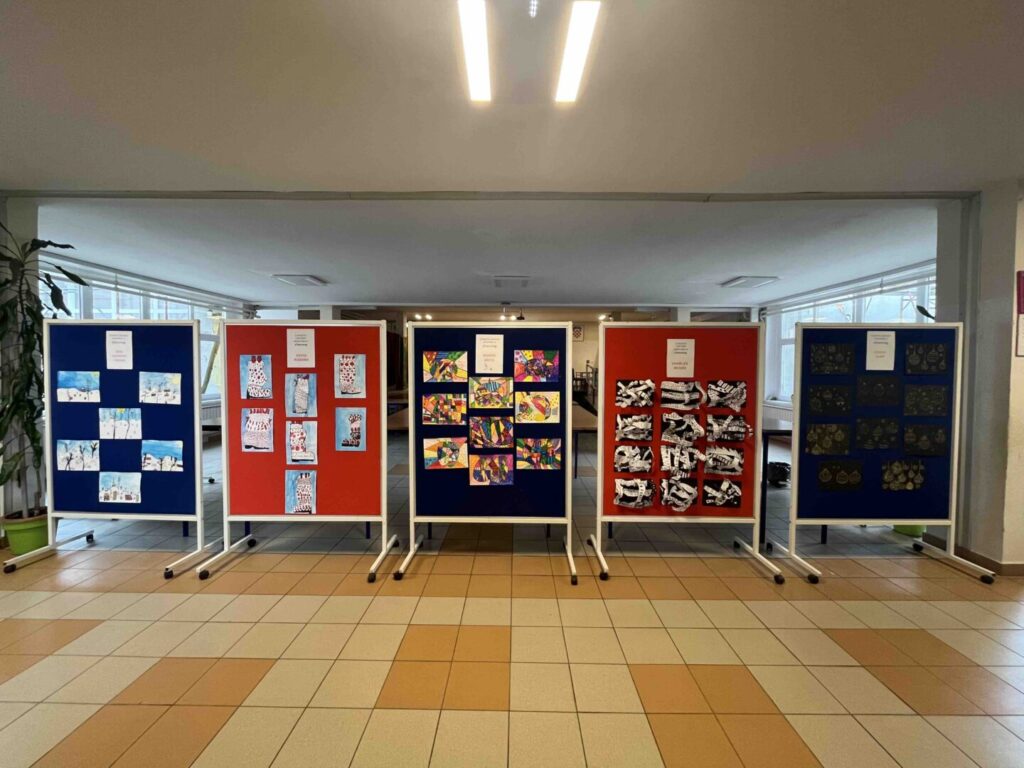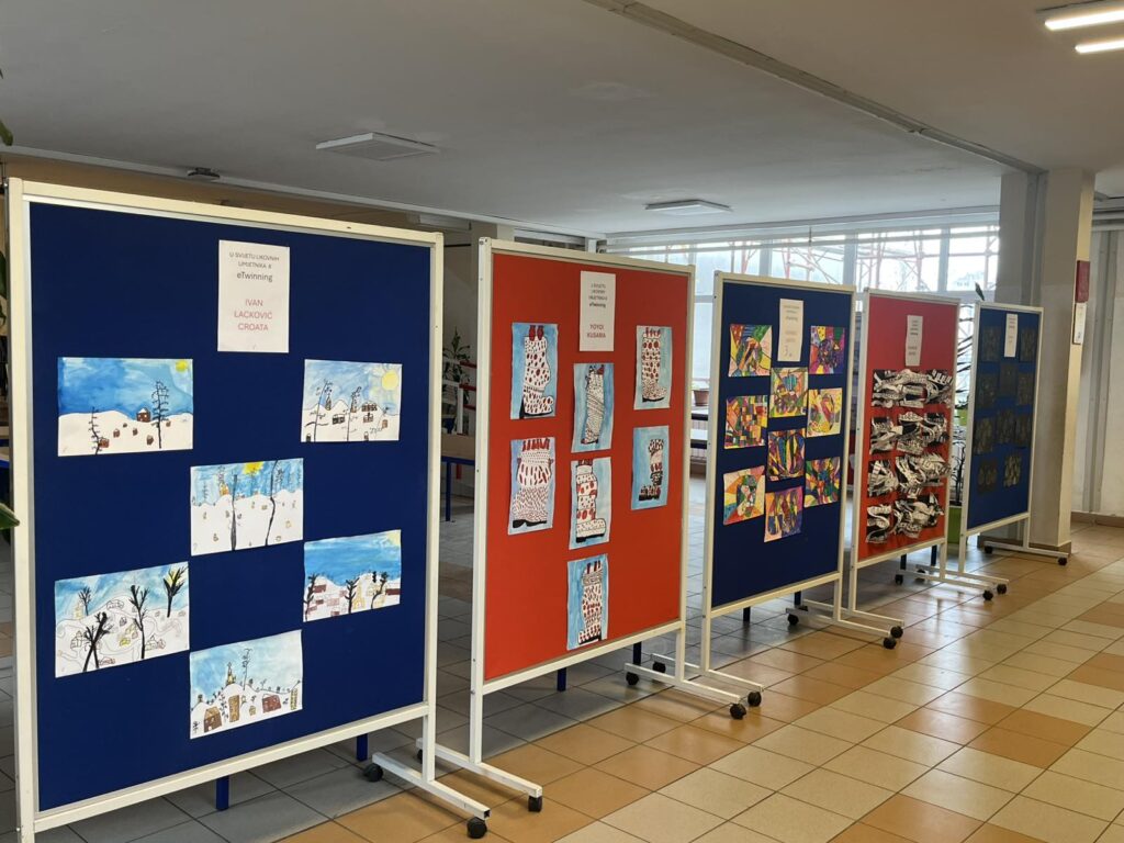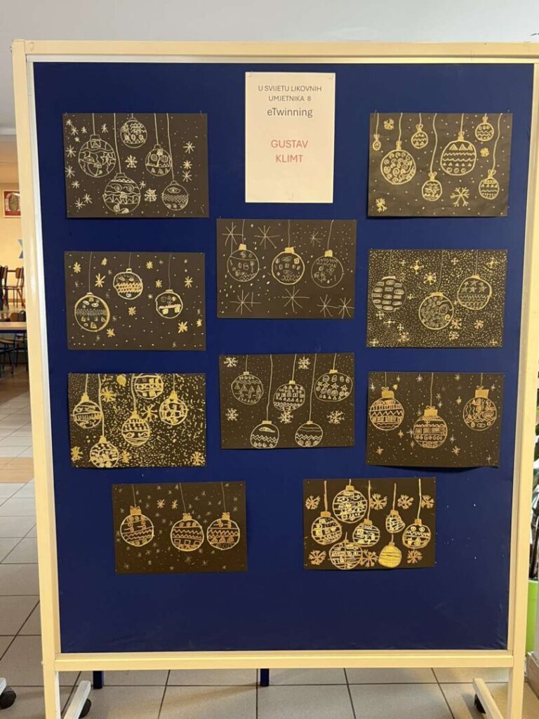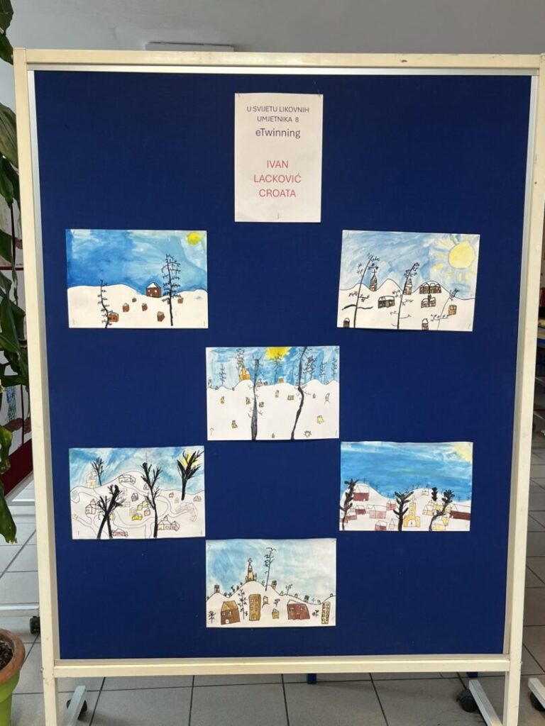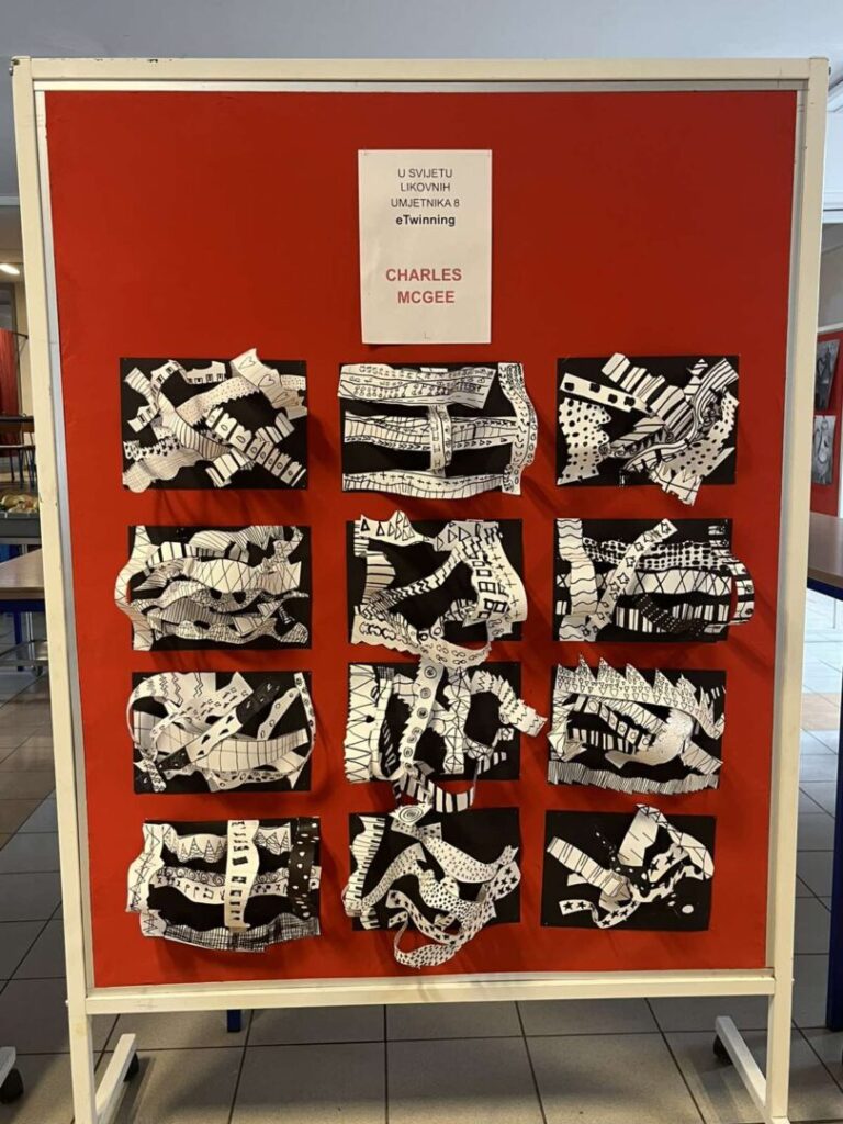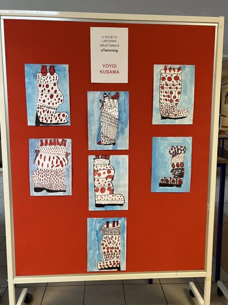 Po završetku eTwinning projekta „U svijetu likovnih umjetnika 8“, učenici 3. a razreda organizirali su u predvorju škole izložbu radova nastalih tijekom projekta. Tijekom godine istraživali su i stvarali nadahnuti djelima poznatih umjetnika: Charlesa McGeea, Gustava Klimta, Jamesa Rizzija, Yayoi Kusame, Romera Britta te Ivana Lackovića Croate.