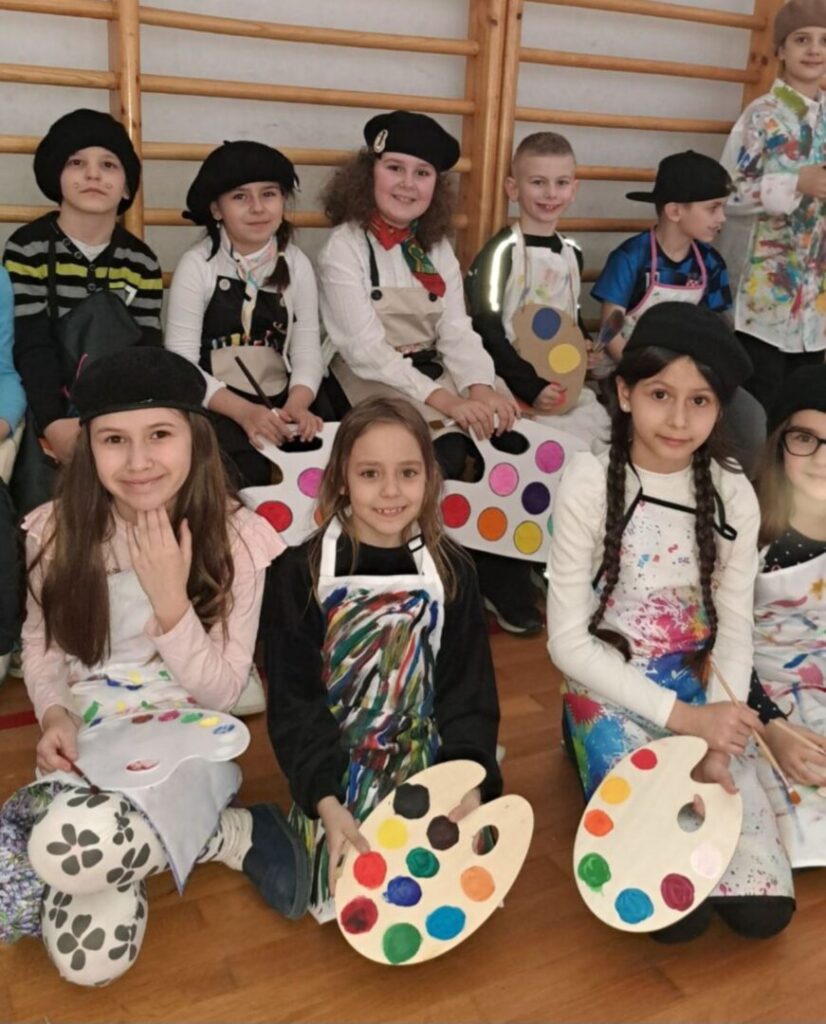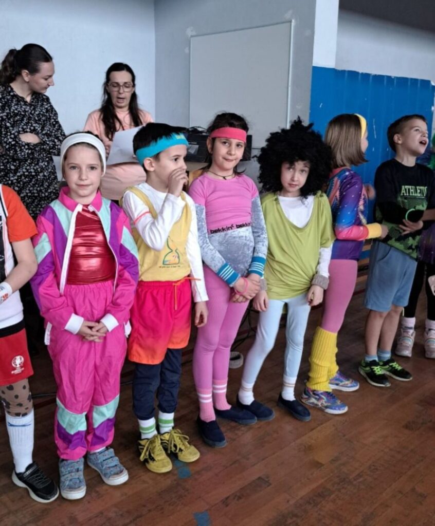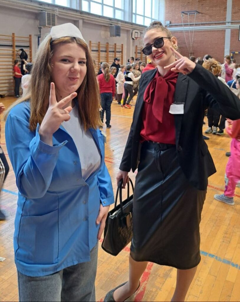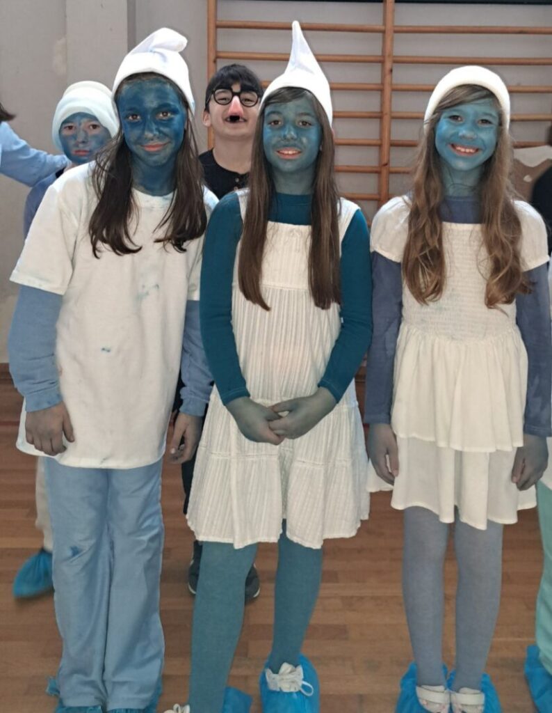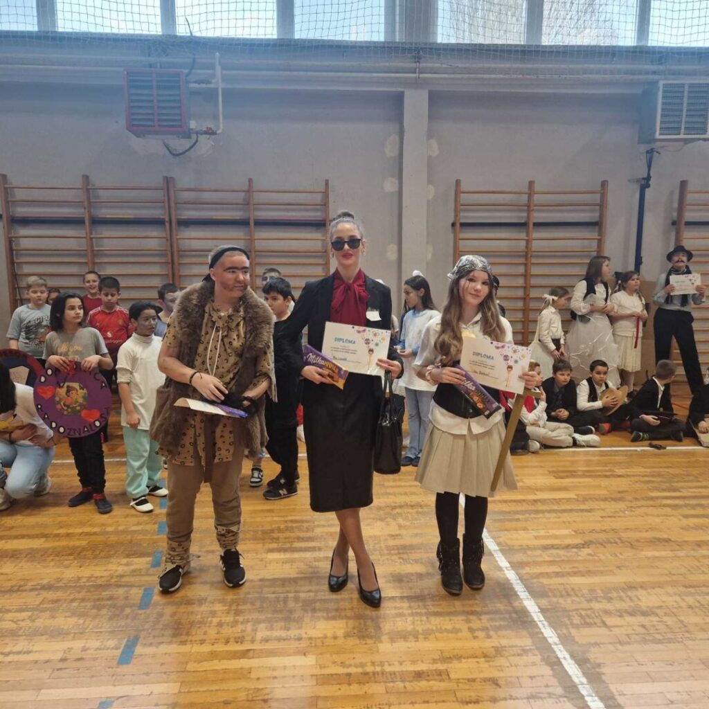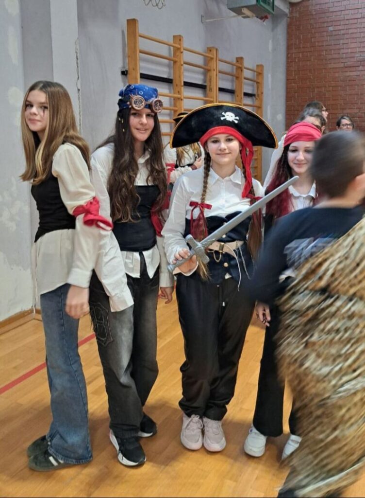 U školi je danas održan maskenbal. Maskirali smo se u prvašiće, kišne oblake, slikare, retro gimnastičare, Vlak u snijegu, Štrumpfove, super junake i pećinske ljude. Našla se tu i Hello Kitty, Naša mala klinika, mafija, svatovi, ribiči, gusari, sudnica i turisti. U ovom najluđem danu u godini zabave nije nedostajalo, a maske su bile šarolike i vrlo zanimljive. Najteži je dio ovog dana bilo izabrati tri najbolje maske u nižim razredima te tri najbolje maske u višim razredima. Nakon podužeg vijećanja komisija je ipak donijela svoj sud: