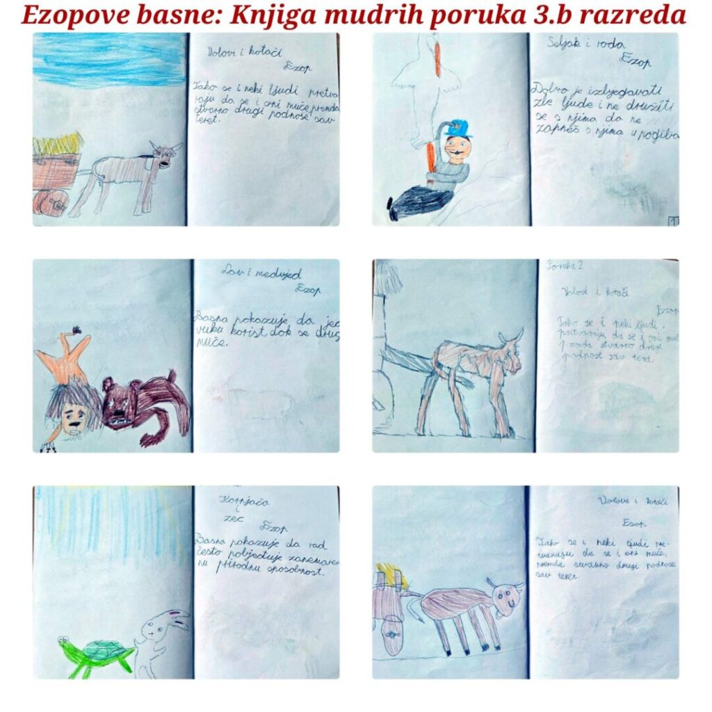 U nastavku aktivnosti, tijekom iduća dva školska sata učenici su izrađivali vlastite knjige mudrih poruka. Zadatak je uključivao pravilno numeriranje knjižice, odabir četiri basne, izdvajanje i zapisivanje pouka te njihovu ilustraciju.