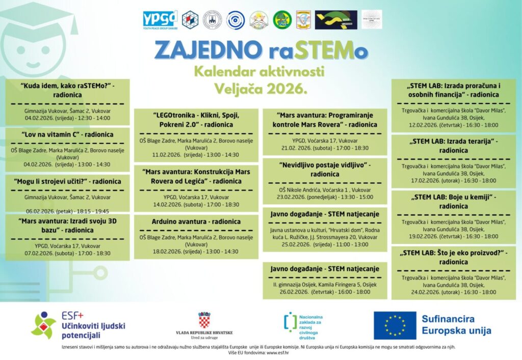 Sukladno projektu, objavljujemo kalendare aktivnosti po mjesecima u kojima mogu sudjelovati učenici osnovnih i srednjih škola te pozivamo sve zainteresirane za prijavu putem poveznice na google forms-u: https://forms.gle/Rih9v1SCLJCrxDNKA ili putem mail-a: zajednorastemo2025@gmail.com ili osobnim dolaskom na adrese: