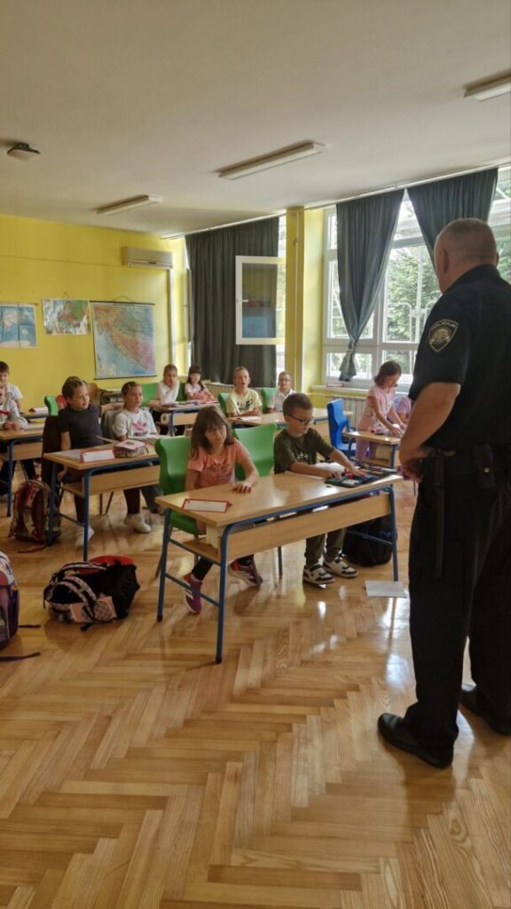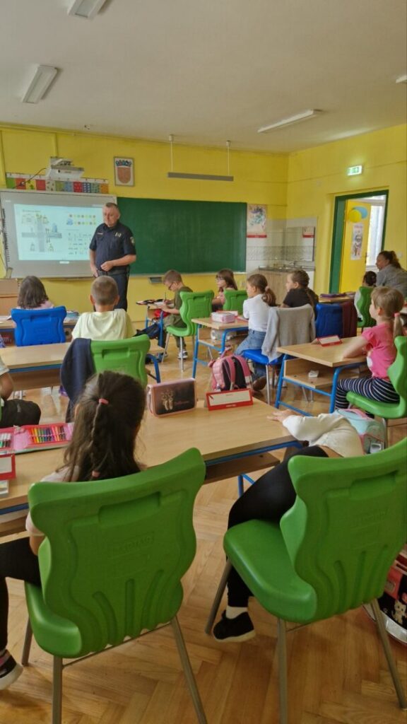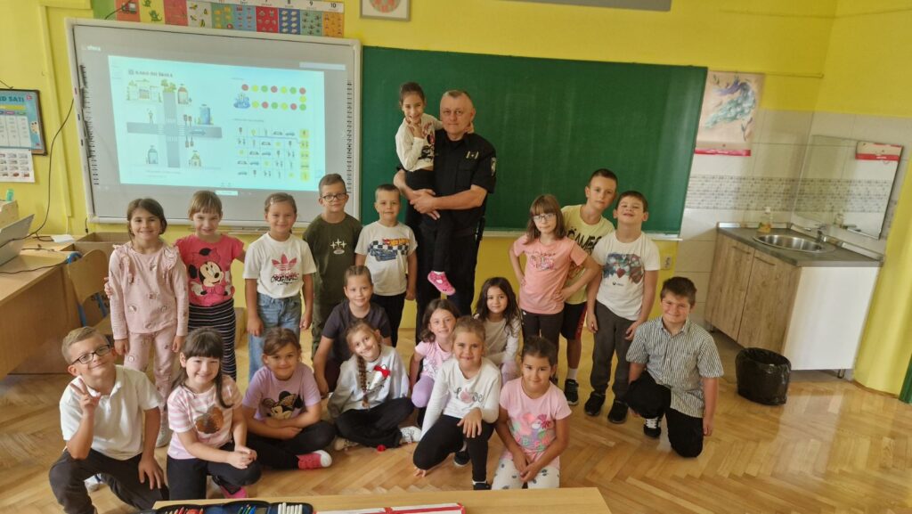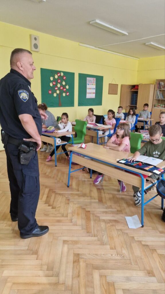 Učenike prvih razreda posjetio je prometni policajac, starijoj djeci dobro poznat policajac Luka. Razgovarao je s djecom o načinu dolaska u školu i ponašanju svih sudionika u prometu. Djeca su opisivala svoje postupke u prometu koje je policajac potvrdio kao pravilne, ali i one koje je trebalo ispraviti kako bi svi bili sigurniji.